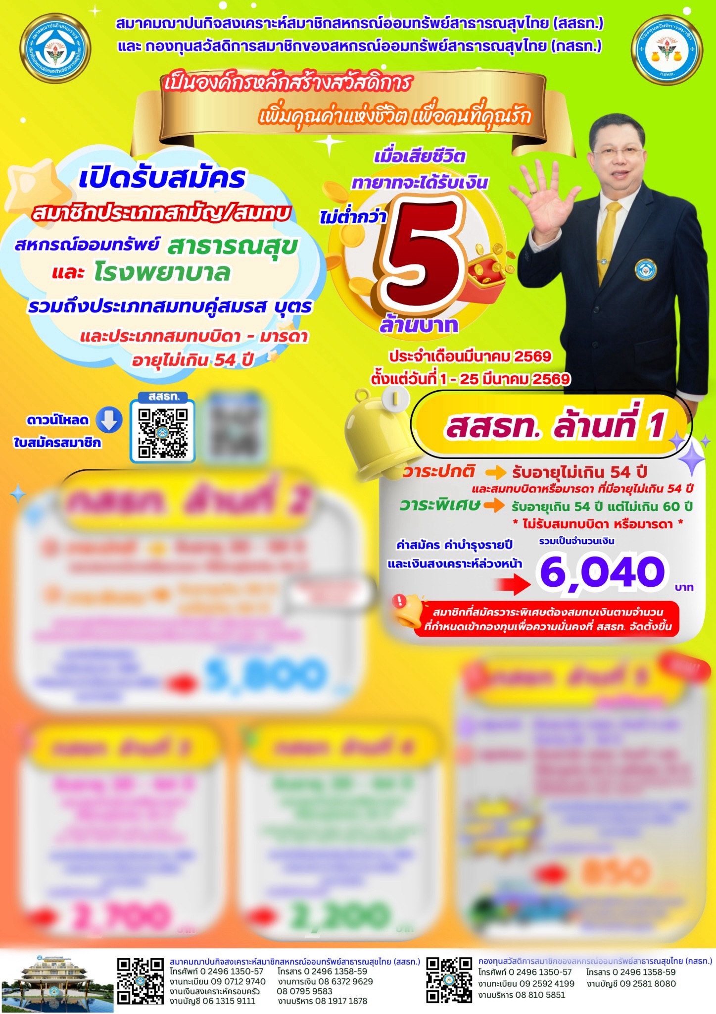 ประชาสัมพันธ์เปิดรับสมัครกองล้านที่ 1 (สสธท.) วาระปกติ และ วาระพิเศษ ประจำเดือน กุมภาพันธ์ 2569 ตั้งแต่วันที่ 1 - 25 มี.ค. 69 ติดต่อสอบถามเพิ่มเติม 037-316139 / 089-7543345 https://drive.google.com/file/d/1hAYNooXQL25XIKcbPhYR-7x2gUhyvvHY/view