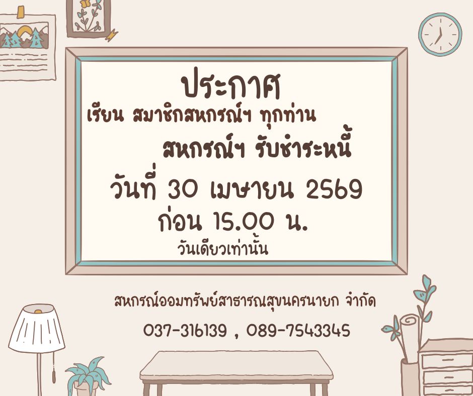 ประกาศ โครงการส่งเสริมการออม สหกรณ์ออมทรัพย์สาธารณสุขนครนายก จำกัด