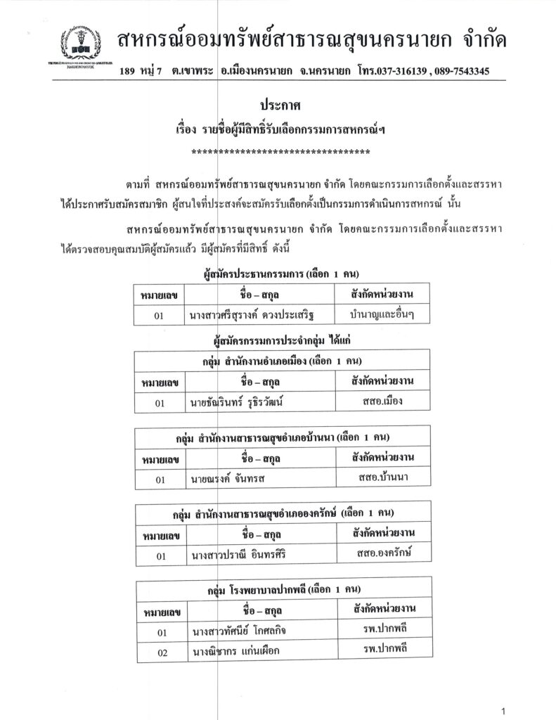 ประกาศรายชื่อผู้มีิสิทธิ์ลงคะแนน 68